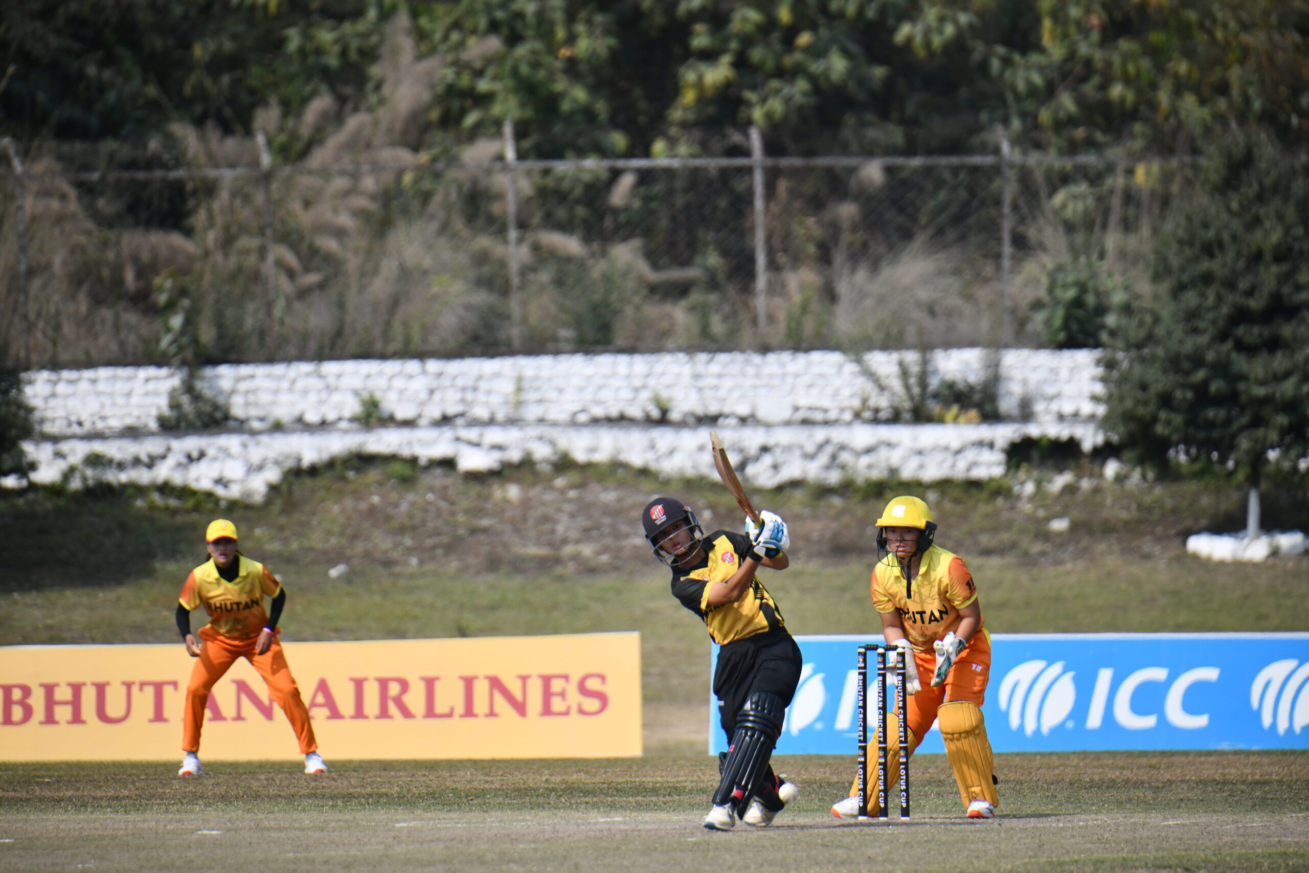 In a moment that will be remembered for years in Bhutanese cricket lore, Bhutan Women pulled off an extraordinary victory against Malaysia Women in the opening match of the Lotus Cup Women’s T20I Tri‑Series at the Gelephu International Cricket Ground today. In a game filled with drama, fierce competition and a nail‑biting finish, Bhutan chased down a modest target of 99, finishing on 100/7 with just four balls to spare, to win by 3 wickets marking their first ever T20I victory over Malaysia and a historic first win on home soil.