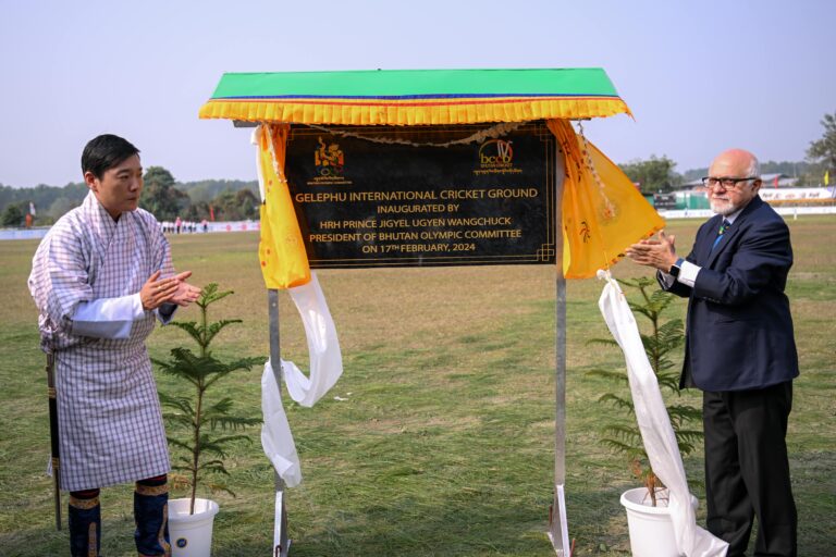 Bhutan’s first international-standard cricket stadium, the Gelephu International Cricket Ground, was officially inaugurated on February 17, 2024. The ceremony was graced by HRH Prince Jigyel Ugyen Wangchuck, marking a historic milestone for cricket in the Kingdom.