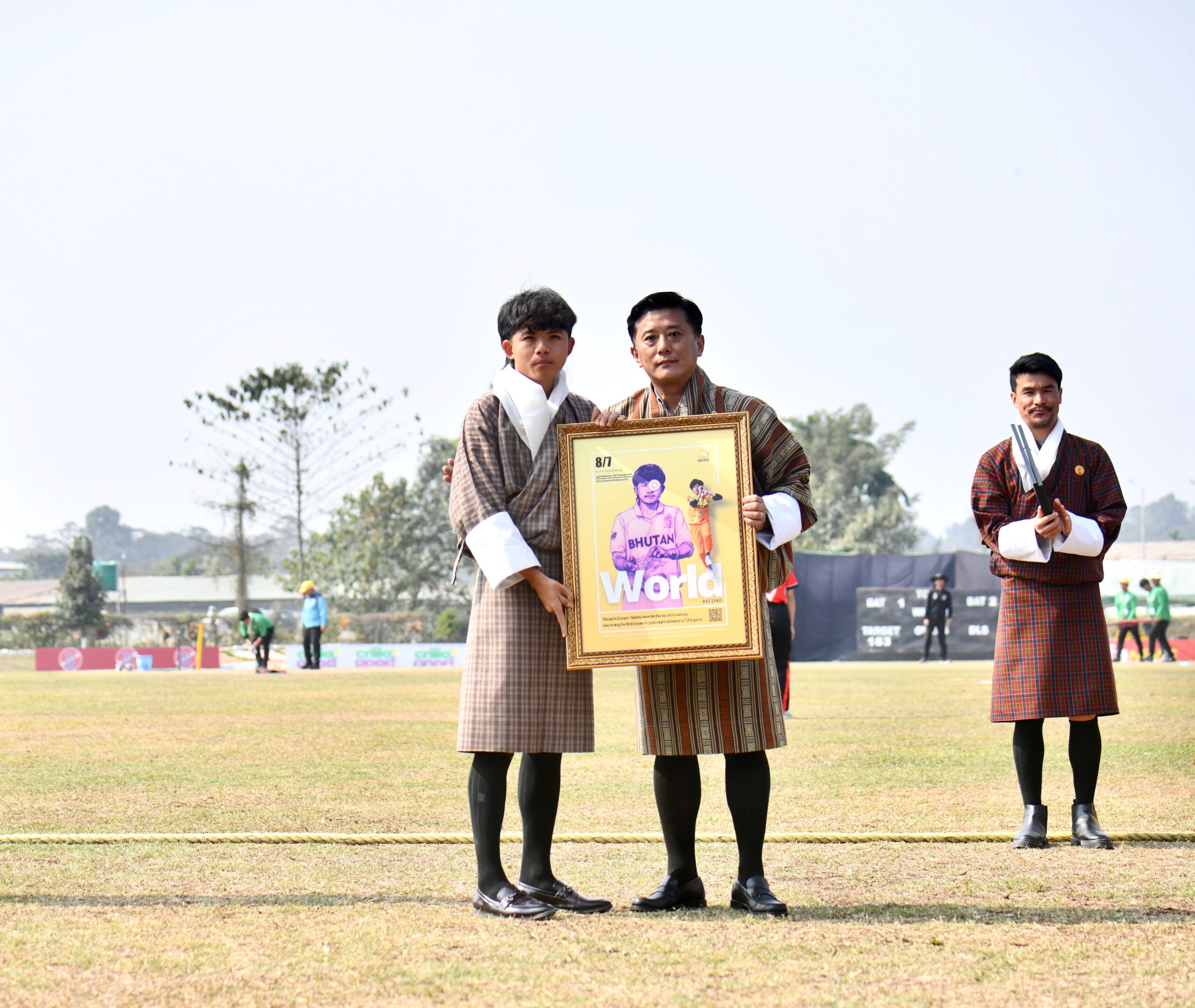 If that century raised the roar of the crowd, the third match on 26 December 2025 delivered a moment that shook the cricketing world. Sonam Yeshey produced a spell for the ages, claiming astonishing figures of 8 wickets for 7 runs in four overs. It was not only match winning, it was record breaking, becoming the best bowling figures in men’s T20 International cricket and making Sonam the first bowler in men’s T20I history to take an eight wicket haul in a single innings. The performance was a reminder of cricket’s magic, when one player can turn a match into history with every delivery.